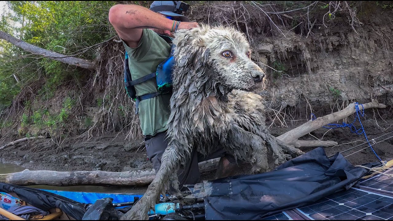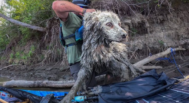 Recently on my solo canoe trip across Canada, I found this dog stuck under a log on the side of the river.